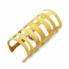 La puntinatura a cerchi concentrici (marchio di fabbrica di Stefano Patriarchi, rende unico il suo Brand) è interamente realizzata a mano da artigiani Italiani. L’effetto finale è come una sabbia dorata che incontrando la luce del Sole e restituisce riflessi unici.