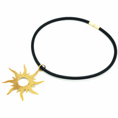 Collana Cuoio Ag925 Dorata Puntinata Mano No Nikel Collana cuoio e oro con puntinatura artigiananle