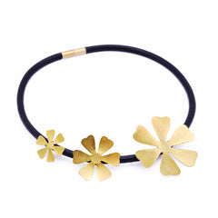 Collana Cuoio Ag925 Dorata Puntinata Mano No Nikel Collana con centrale in oro puntinato e sabbiato in lastra interamente fatta a m ano
