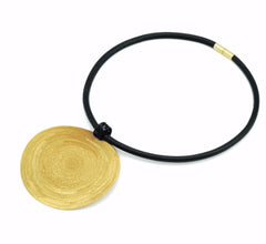 Una fra le più belle collane semplici della Linea Sole la terza misura cm 7,0. Collana in Argento Dorato Placcato Oro, Cuoio Italiano, Puntinata a Mano No Nikel. Chiusura a baionetta in Argento si apre con pressione e mezzo giro.
