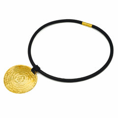 Collana Cuoio Ag925 Dorata Puntinata Mano No Nikel Collana con centrale in oro puntinato e sabbiato in lastra interamente fatta a m ano
