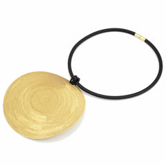 Collana Cuoio Ag925 Dorata Puntinata Mano, No Nikel, Collana con centrale in oro puntinato e satinato in lastra interamente fatta a mano cm 10,6