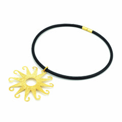Collana Cuoio Ag925 Dorata Puntinata Mano No Nikel