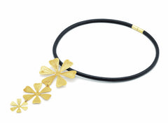Collana Cuoio Ag925 Dorata Puntinata Mano No Nikel